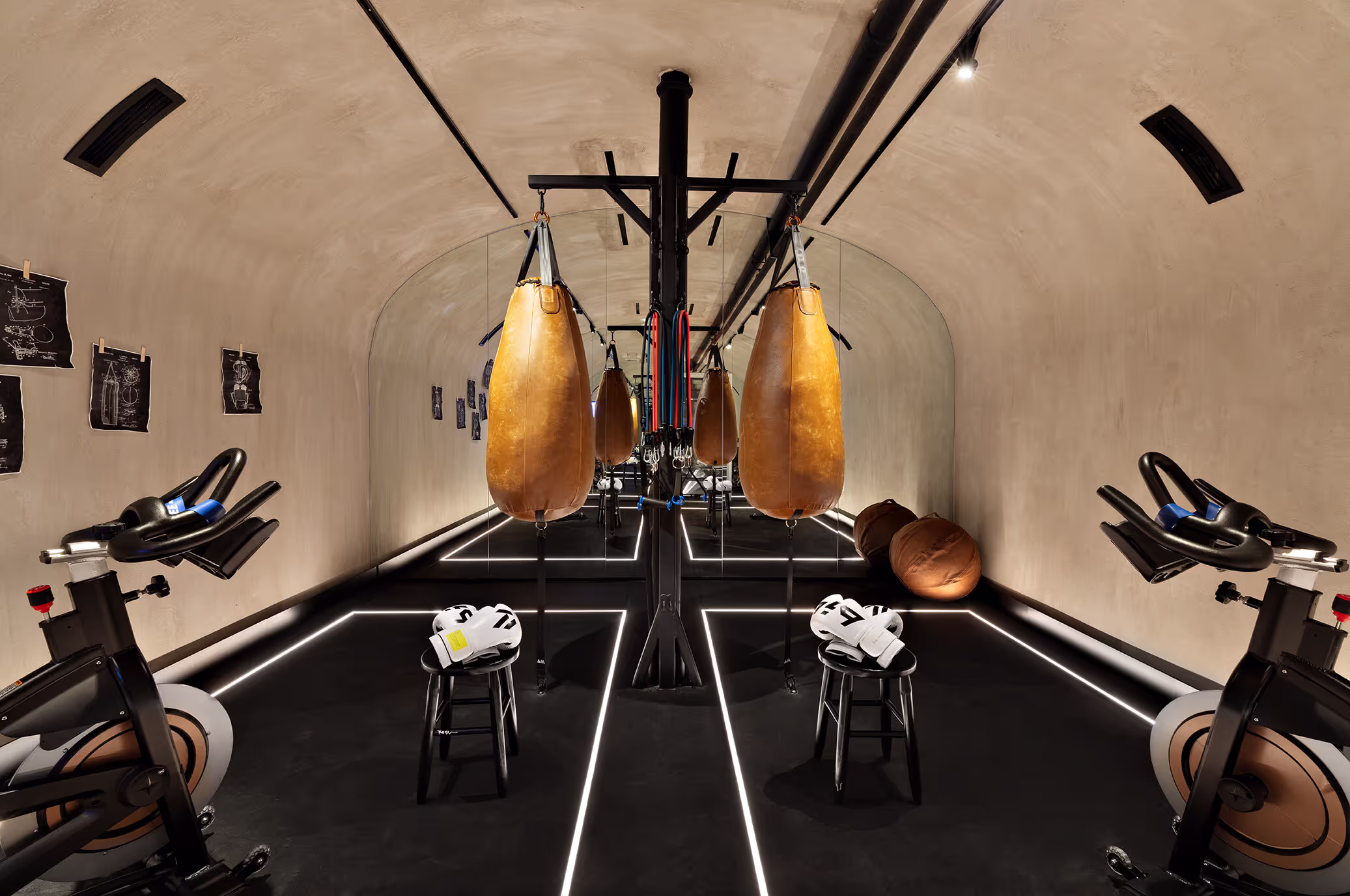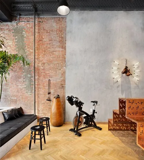stationary bikes, resistance bands, and boxing. What sets this gym apart is its striking
